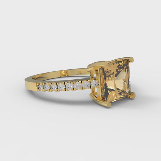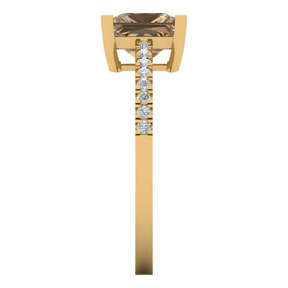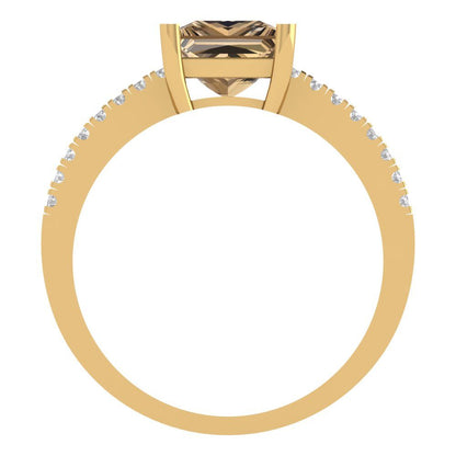 1.62 cttw Zirconia Simulated Champagne Diamond Solitaire with Zirconia Simulated Diamond Accents Engagement Ring - Solid Gold (VVS1, Princess Cut,6.5mm)