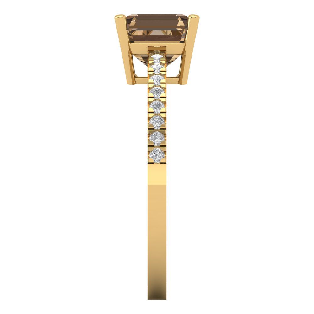 2.7 cttw Zirconia Simulated Champagne Diamond Solitaire with Zirconia Simulated Diamond Accents Engagement Ring - Solid Gold (VVS1, Cushion Cut,6.5mm)