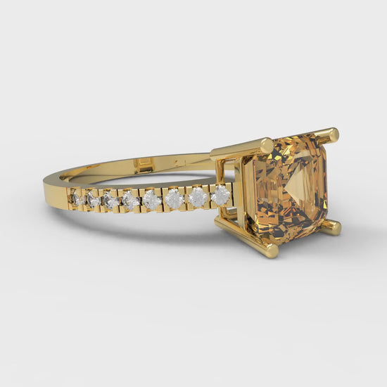 2.7 cttw Zirconia Simulated Champagne Diamond Solitaire with Zirconia Simulated Diamond Accents Engagement Ring - Solid Gold (VVS1, Asscher Cut,6.5mm)