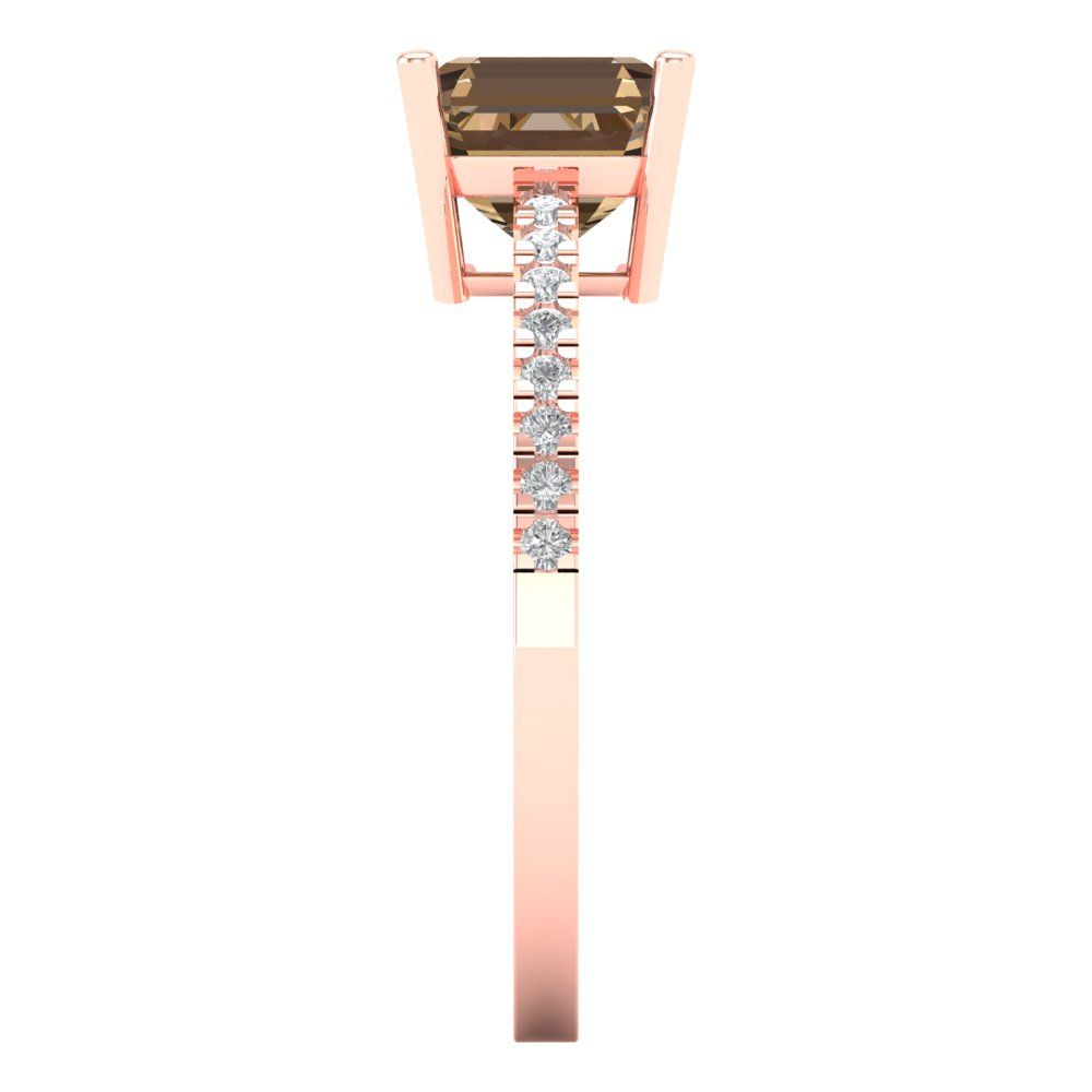 2.7 cttw Zirconia Simulated Champagne Diamond Solitaire with Zirconia Simulated Diamond Accents Engagement Ring - Solid Gold (VVS1, Asscher Cut,6.5mm)