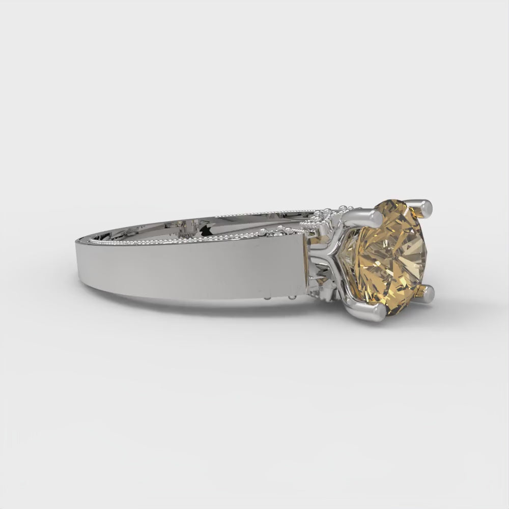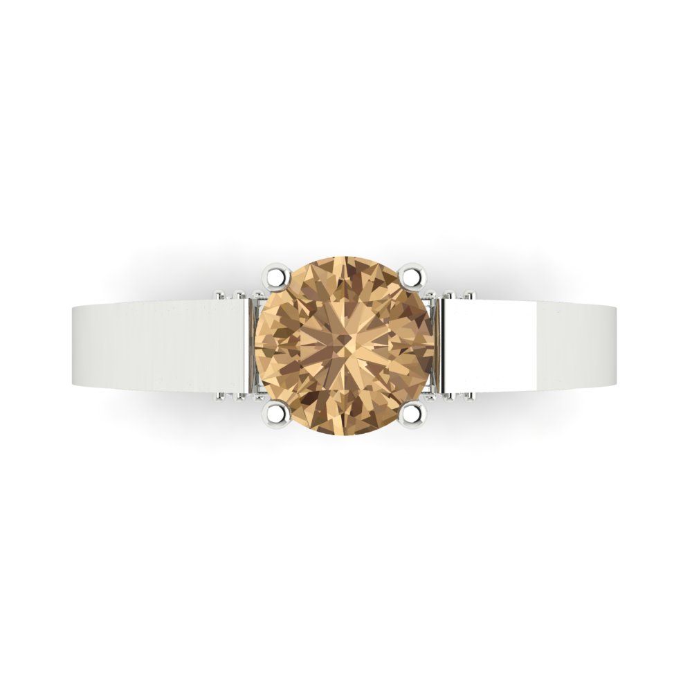 1.06 cttw Zirconia Simulated Champagne Diamond Solitaire with Zirconia Simulated Diamond Accents Engagement Ring - Solid Gold (VVS1, Round Cut,6.5mm)