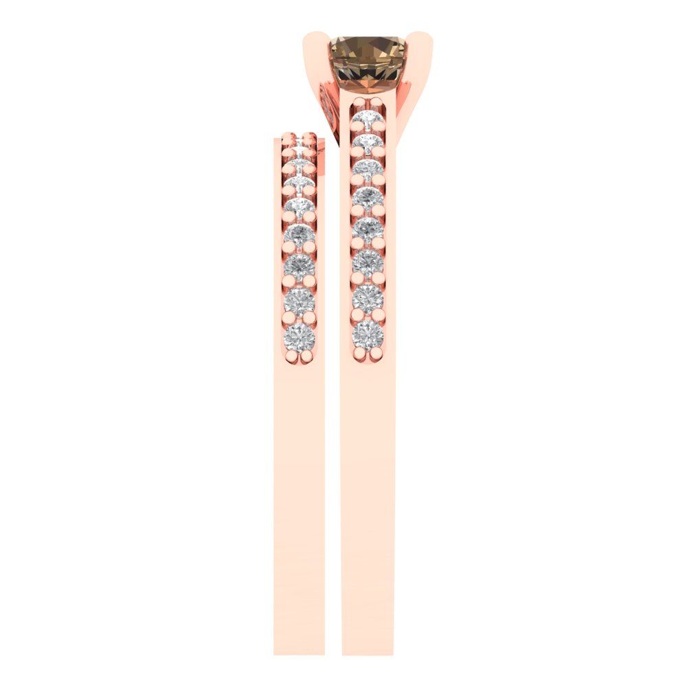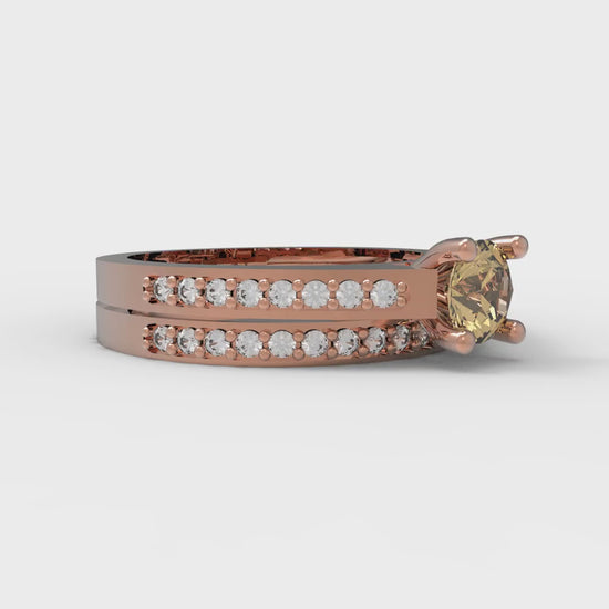 0.86 cttw Round Cut Simulated Champagne Diamond Bridal Set - Solid Rose Gold Engagement Ring & Wedding Band