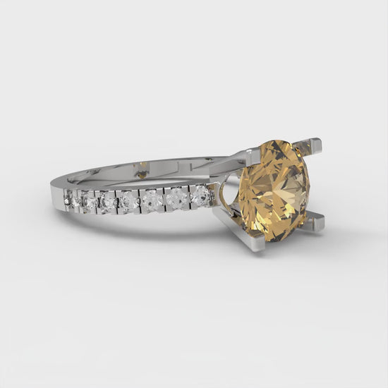 1.71 cttw Zirconia Simulated Champagne Diamond Solitaire with Zirconia Simulated Diamond Accents Engagement Ring - Solid Gold (VVS1, Round Cut,7.5mm)