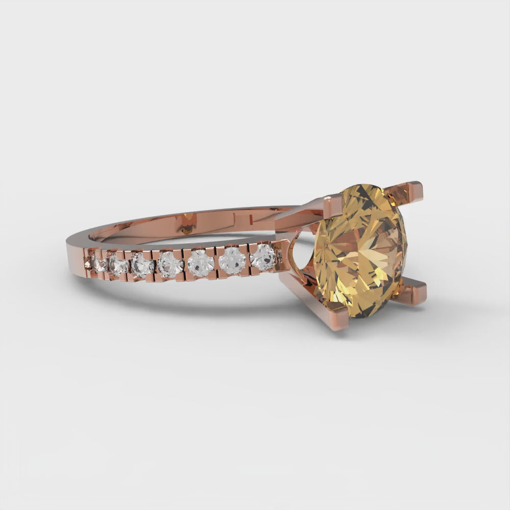 1.71 cttw Zirconia Simulated Champagne Diamond Solitaire with Zirconia Simulated Diamond Accents Engagement Ring - Solid Gold (VVS1, Round Cut,7.5mm)