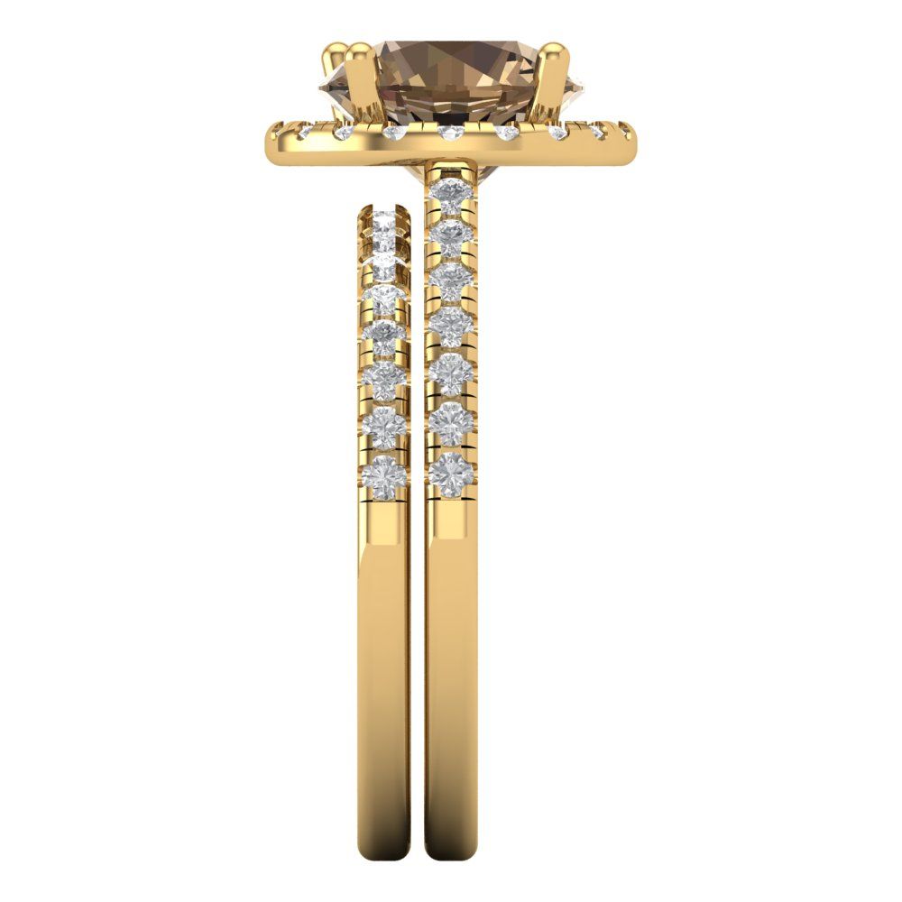 2.52 cttw Round Cut Simulated Champagne Diamond Bridal Set - Solid Yellow Gold Engagement Ring & Wedding Band