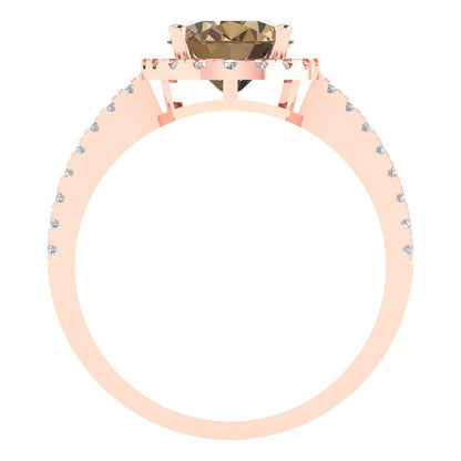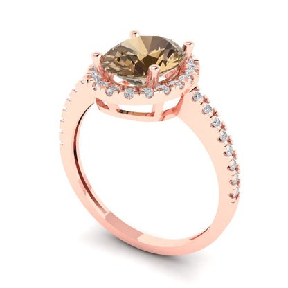 2.27 cttw Zirconia Simulated Champagne Diamond Solitaire with Zirconia Simulated Diamond Accents Engagement Ring - Solid Gold (VVS1, Oval Cut,9X7mm)