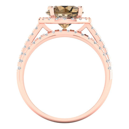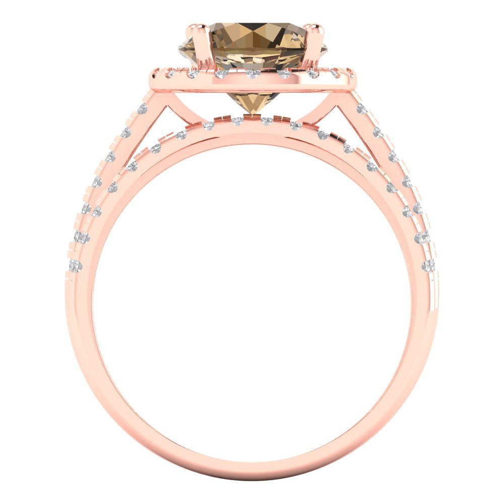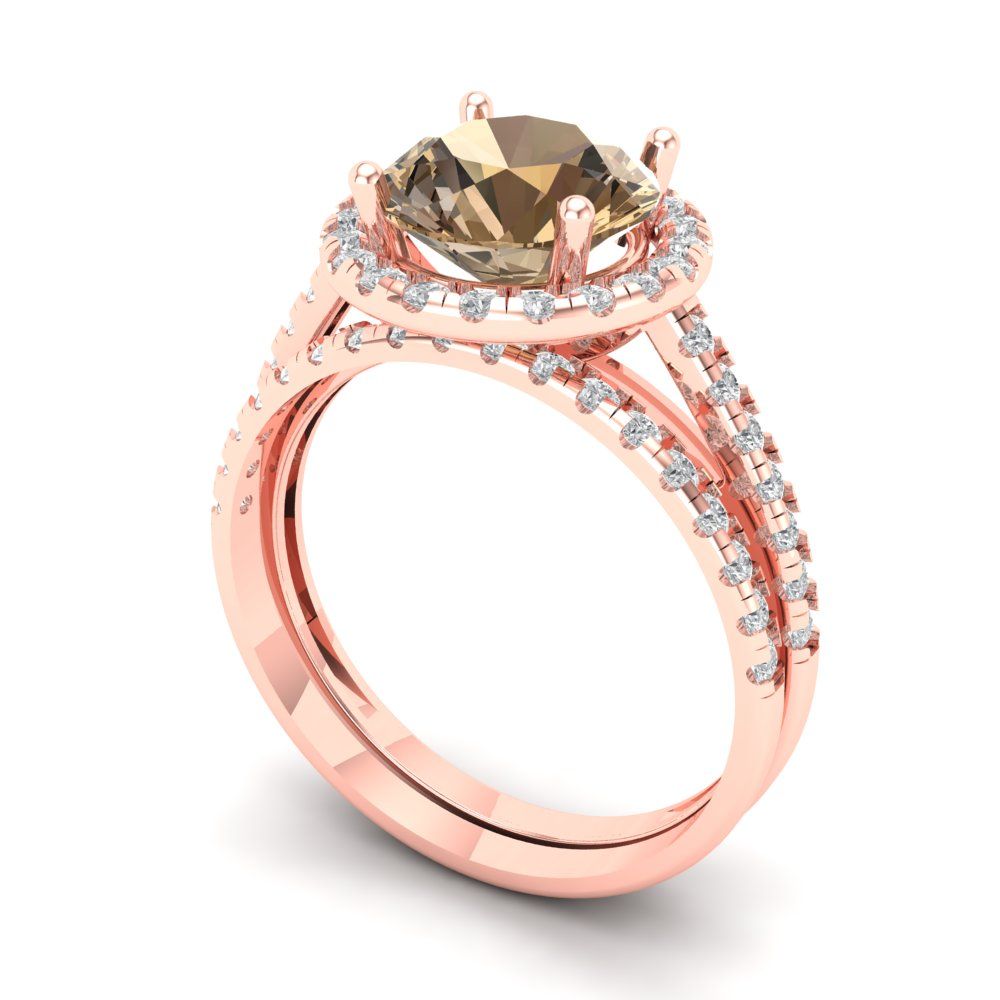 2.52 cttw Round Cut Simulated Champagne Diamond Bridal Set - Solid Rose Gold Engagement Ring & Wedding Band