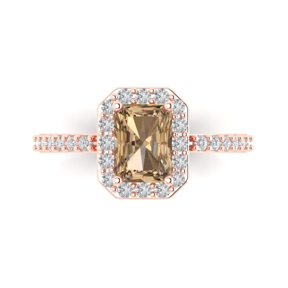 1.92 cttw Zirconia Simulated Champagne Diamond Solitaire with Zirconia Simulated Diamond Accents Engagement Ring - Solid Gold (VVS1, Emerald Cut,7.5X5.5mm)