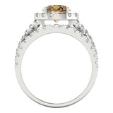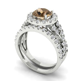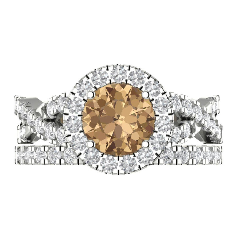 1.795 cttw Round Cut Simulated Champagne Diamond Bridal Set - Solid White Gold Engagement Ring & Wedding Band