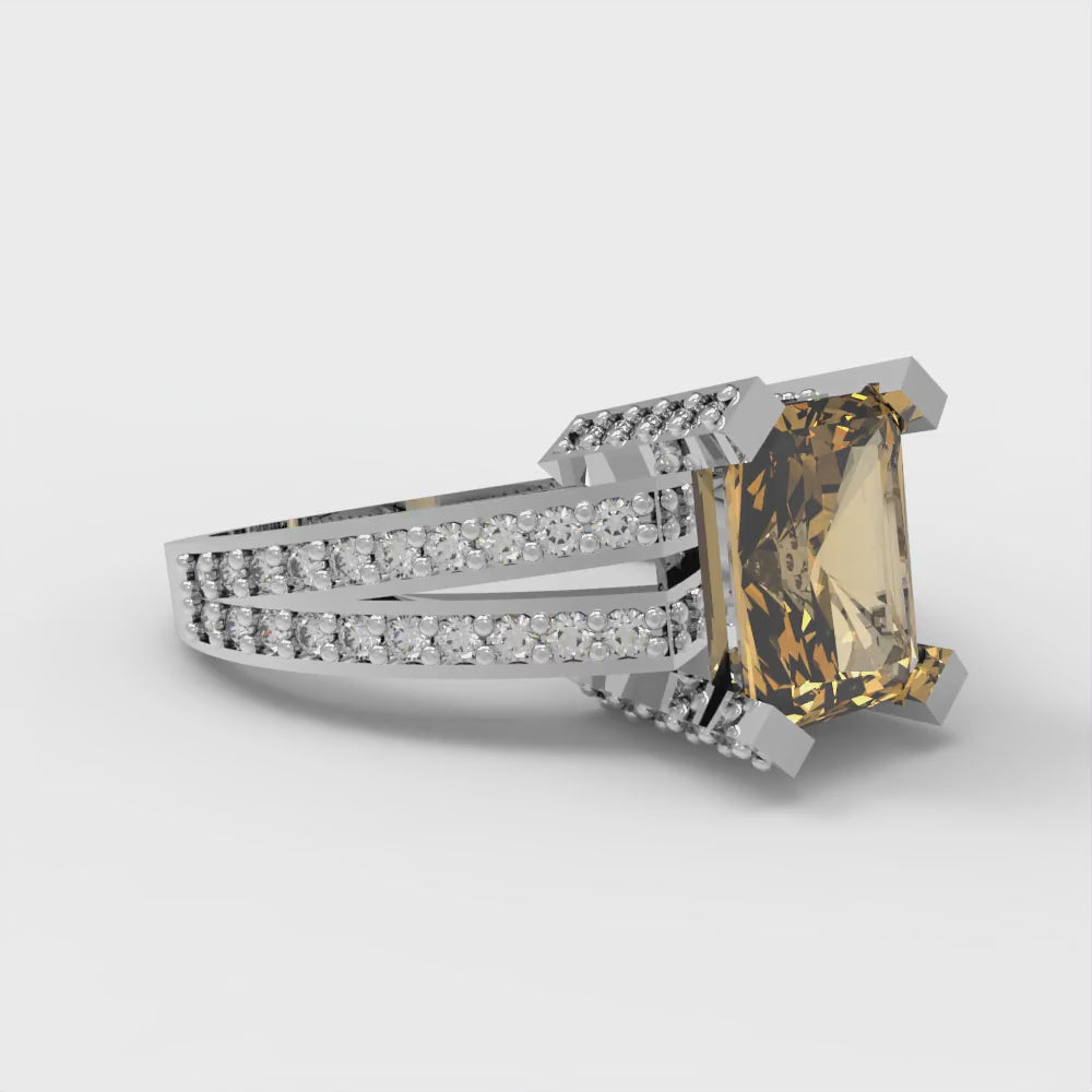 2.35 cttw Zirconia Simulated Champagne Diamond Solitaire with Zirconia Simulated Diamond Accents Engagement Ring - Solid Gold (VVS1, Emerald Cut,8x6mm)