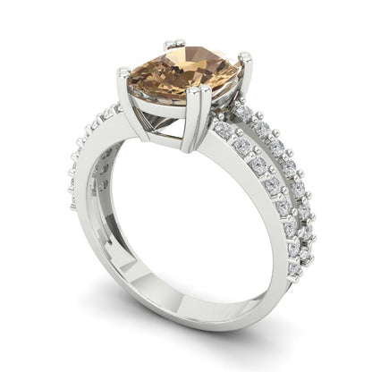 3.48 cttw Zirconia Simulated Champagne Diamond Solitaire with Zirconia Simulated Diamond Accents Engagement Ring - Solid Gold (VVS1, Long Cushion Cut,9x7mm)