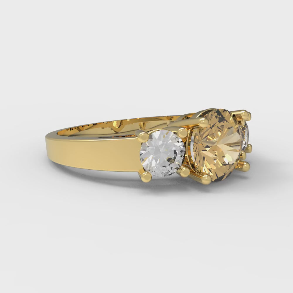 1.5 cttw Zirconia Simulated Champagne Diamond Three-Stone Engagement Ring - Solid Gold (VVS1, Round Cut,6.5mm)