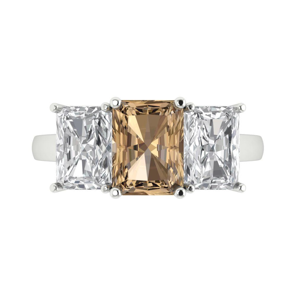 4 cttw Zirconia Simulated Champagne Diamond Three-Stone Engagement Ring - Solid Gold (VVS1, Emerald Cut,8x6mm)