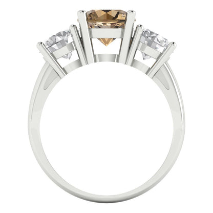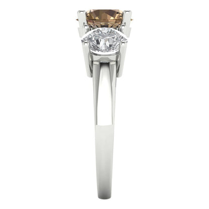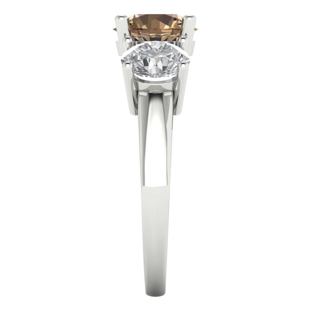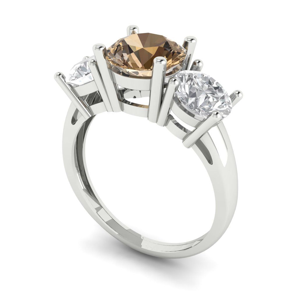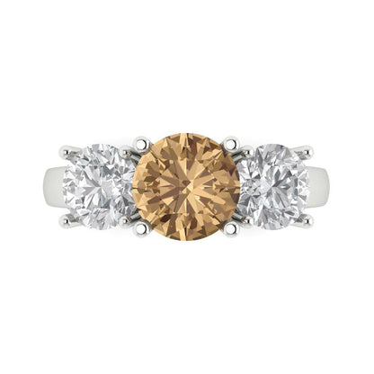 2.5 cttw Zirconia Simulated Champagne Diamond Three-Stone Engagement Ring - Solid Gold (VVS1, Round Cut,7.5mm)