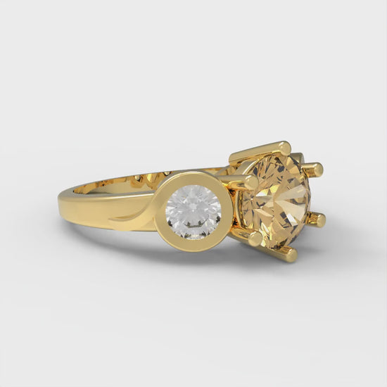 1.72 cttw Zirconia Simulated Champagne Diamond Three-Stone Engagement Ring - Solid Gold (VVS1, Round Cut,6.5mm)