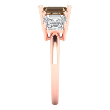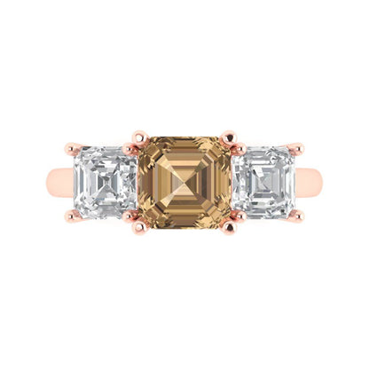4 cttw Zirconia Simulated Champagne Diamond Three-Stone Engagement Ring - Solid Gold (VVS1, Square Emerald Cut,7.0X7.0mm)