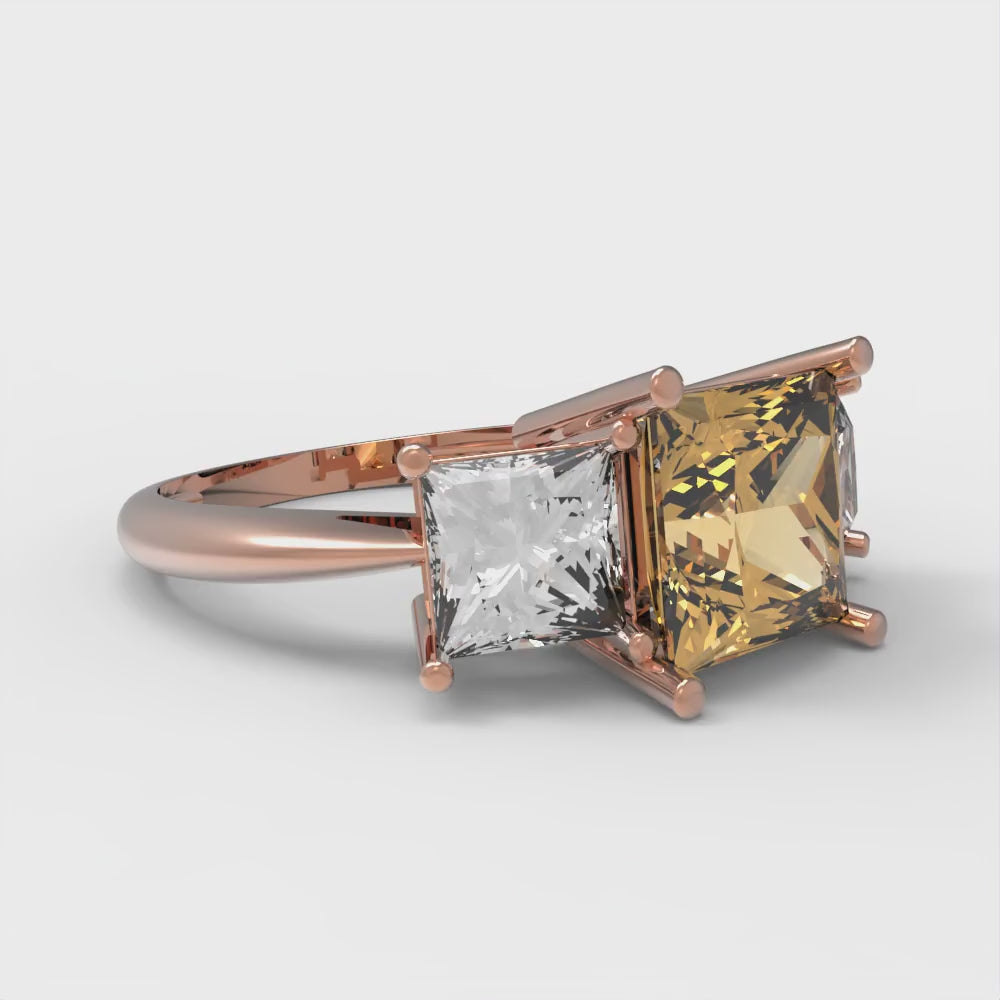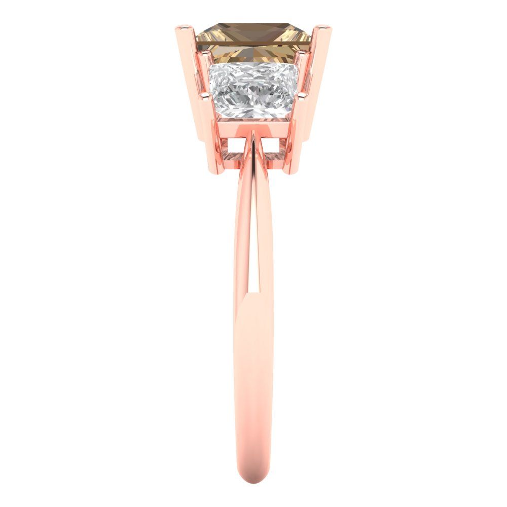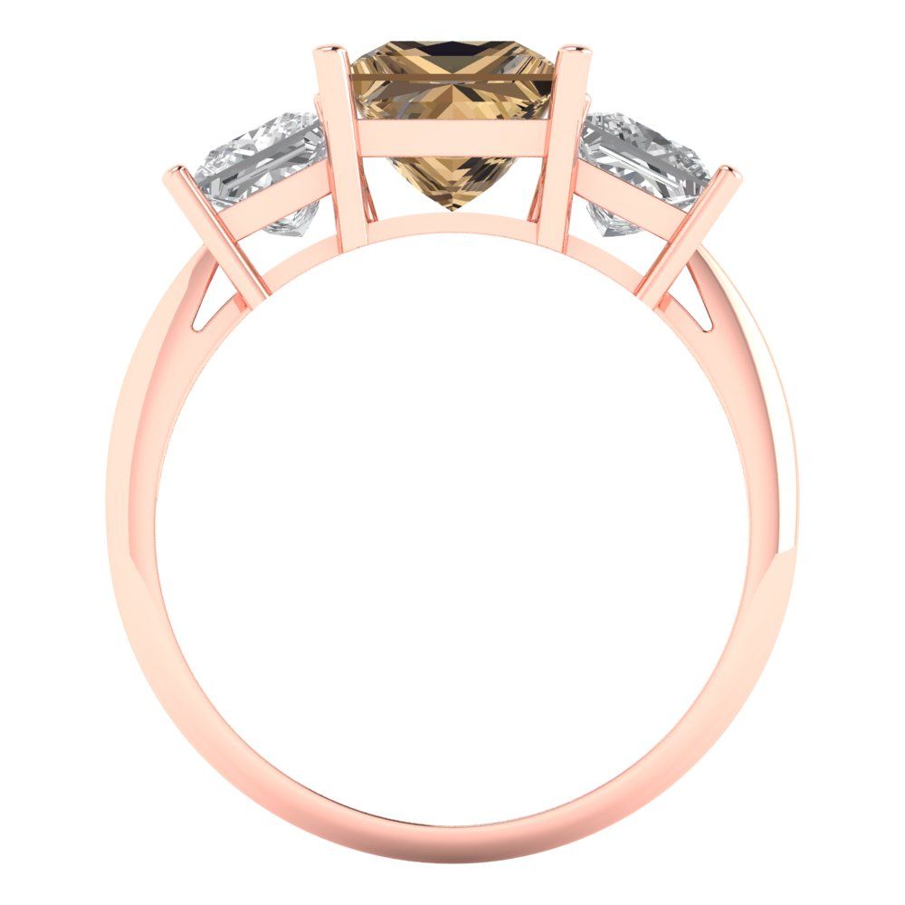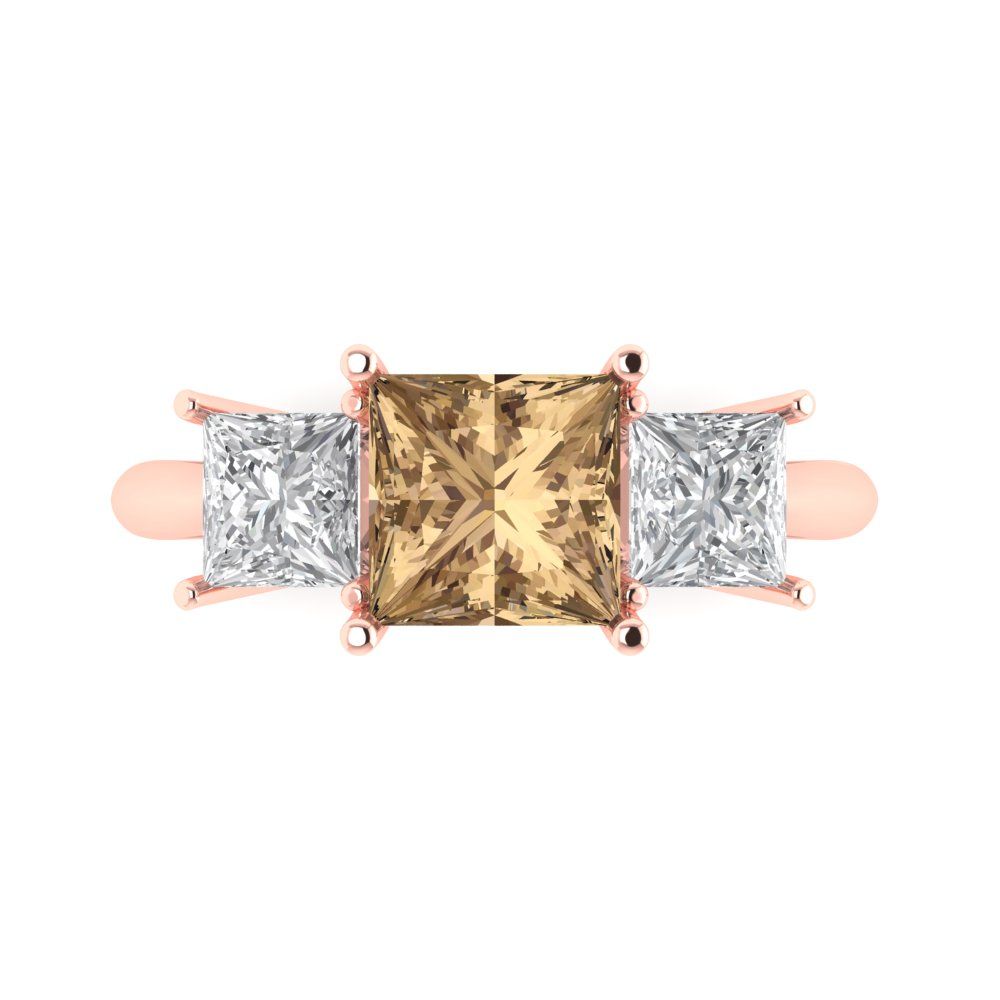 2.5 cttw Zirconia Simulated Champagne Diamond Three-Stone Engagement Ring - Solid Gold (VVS1, Princess Cut,6.5 mm)