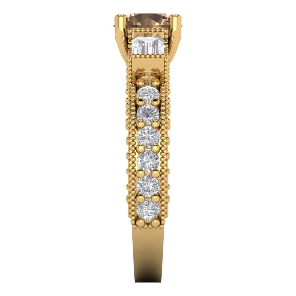2.33 cttw Zirconia Simulated Champagne Diamond Three-Stone Engagement Ring - Solid Gold (VVS1, Round Cut,6.5mm)