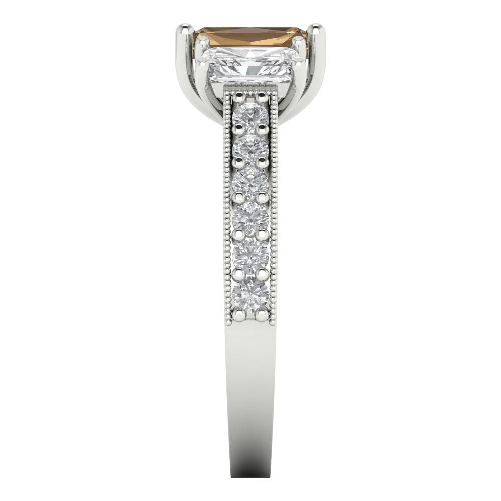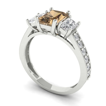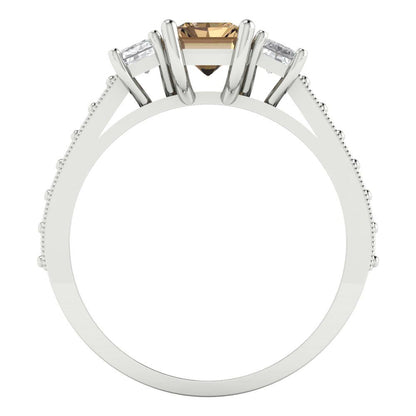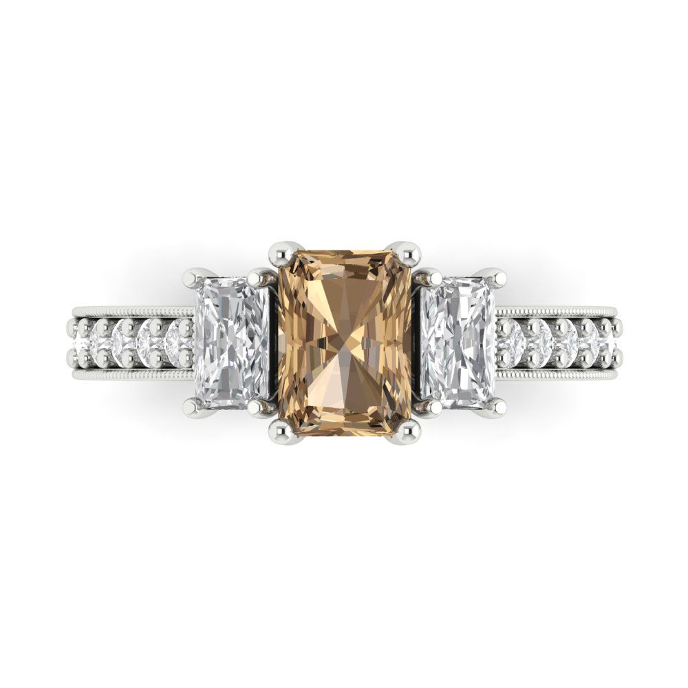 1.88 cttw Zirconia Simulated Champagne Diamond Three-Stone Engagement Ring - Solid Gold (VVS1, Emerald Cut,7x5mm)