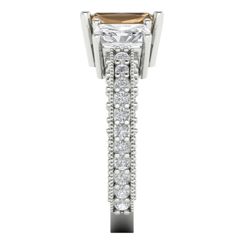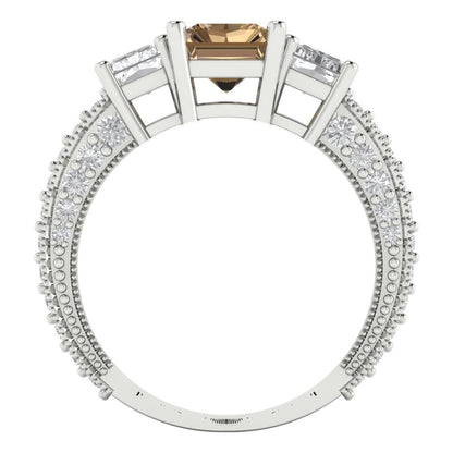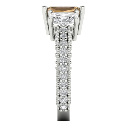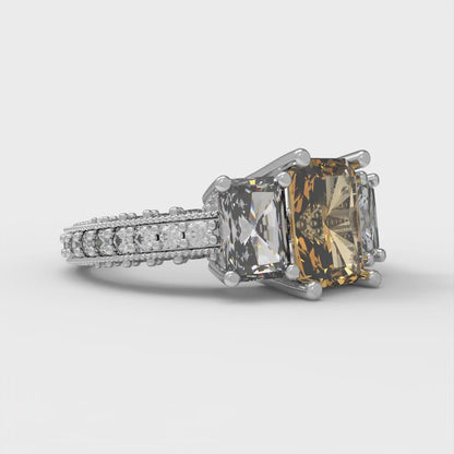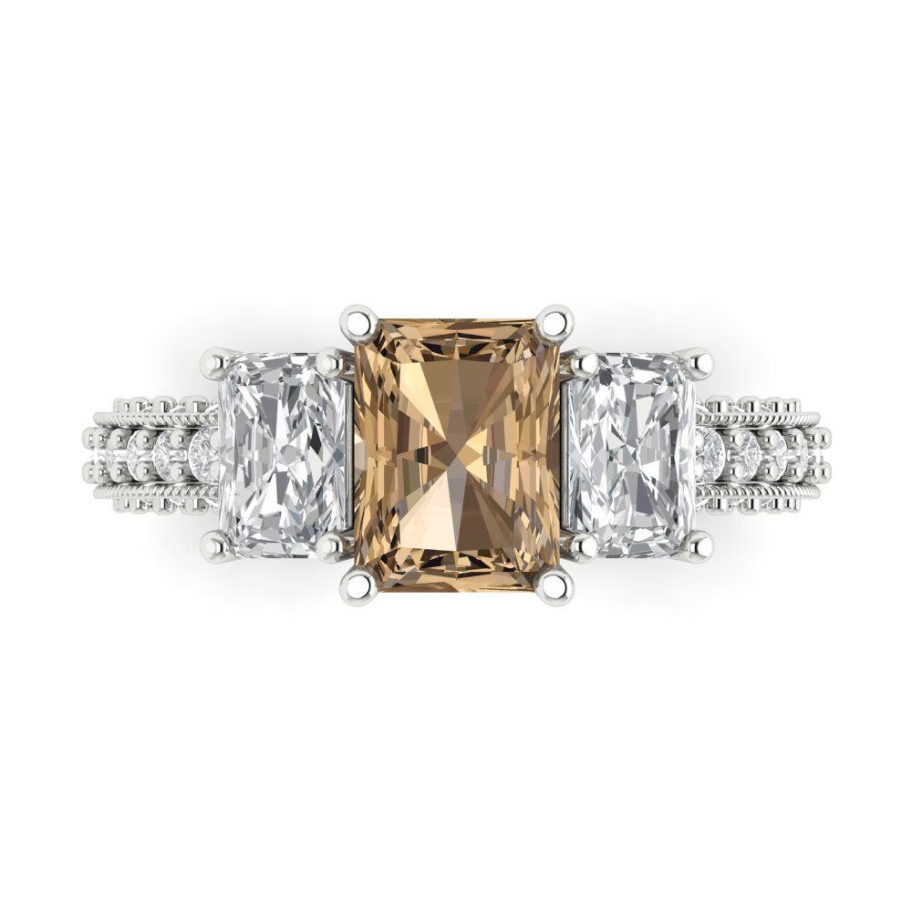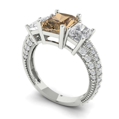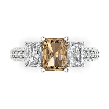 3.61 cttw Zirconia Simulated Champagne Diamond Three-Stone Engagement Ring - Solid Gold (VVS1, Emerald Cut,8x6mm)