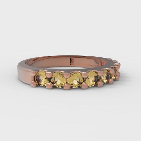 0.63 cttw Natural Citrine Round Cut Rose Gold Eternity Wedding Band