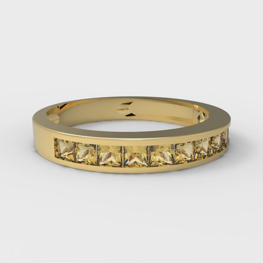 0.78 cttw Natural Citrine Princess Cut Yellow Gold Eternity Wedding Band