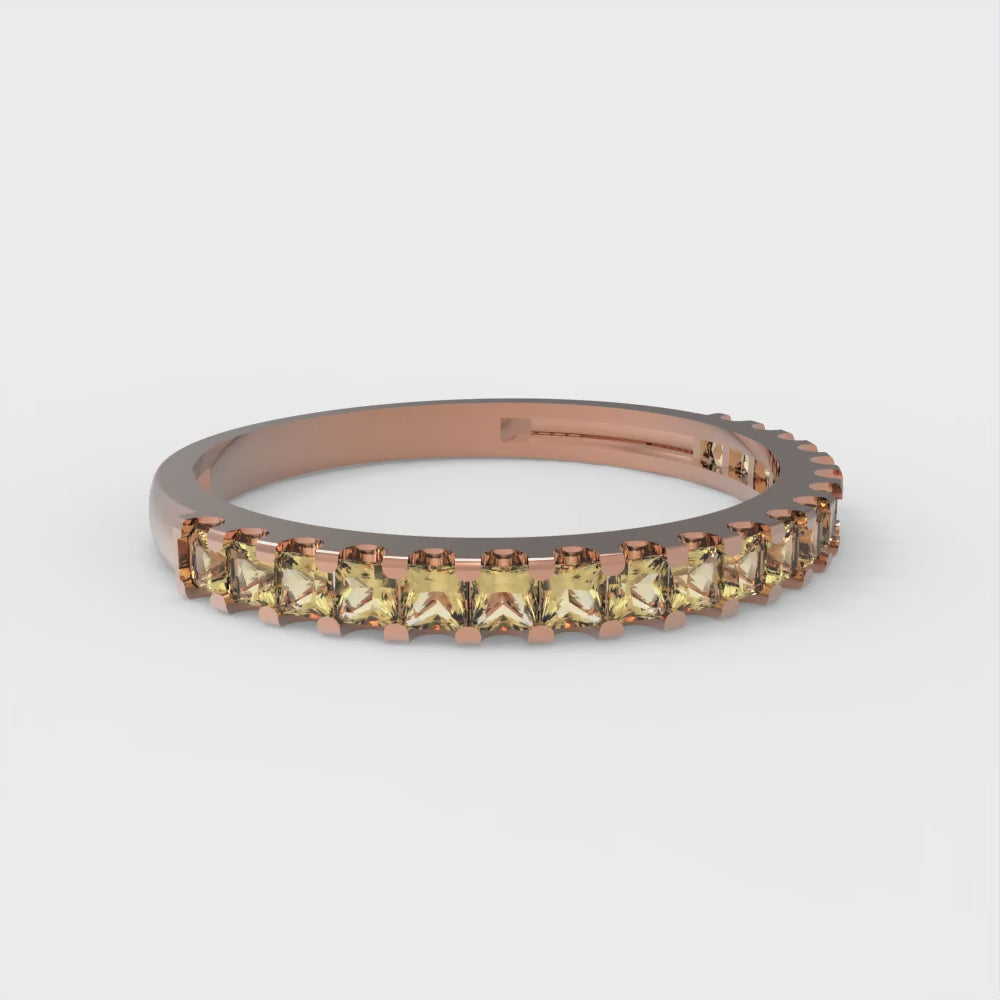 0.285 cttw Natural Citrine Princess Cut Rose Gold Eternity Wedding Band