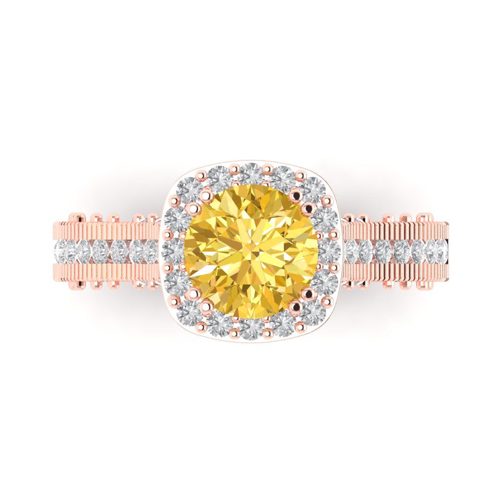2.37 cttw Natural Citrine Hidden Halo Engagement Ring - Solid Gold (Round Cut,7.5mm)