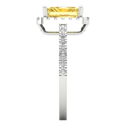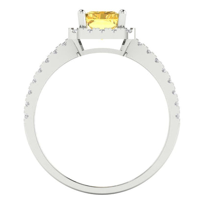 1.86 cttw Natural Citrine Hidden Halo Engagement Ring - Solid Gold (Emerald Cut,7.5x5.5mm)