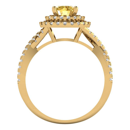 1.3125 cttw Natural Citrine Hidden Halo Engagement Ring - Solid Gold (Round Cut,6mm)