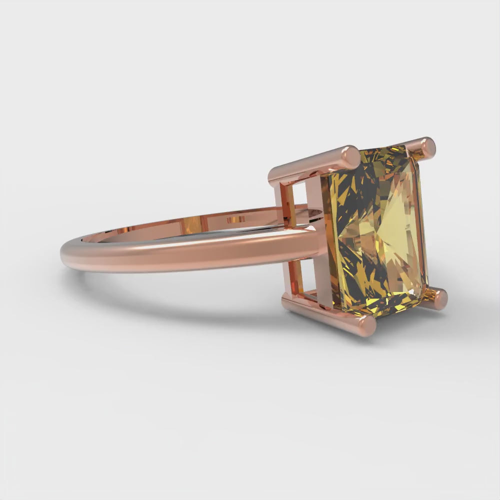 2 cttw Natural Citrine Solitaire Engagement Ring - Solid Gold (Emerald Cut,8x6mm)