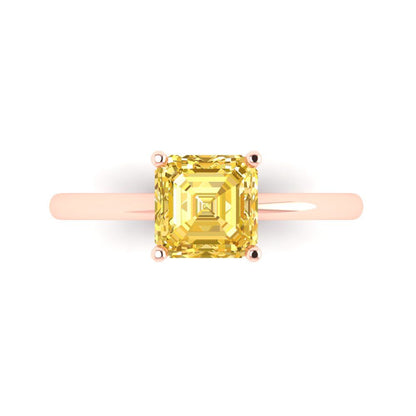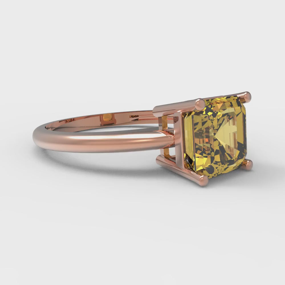 1.5 cttw Natural Citrine Solitaire Engagement Ring - Solid Gold (Asscher Cut,6.5mm)