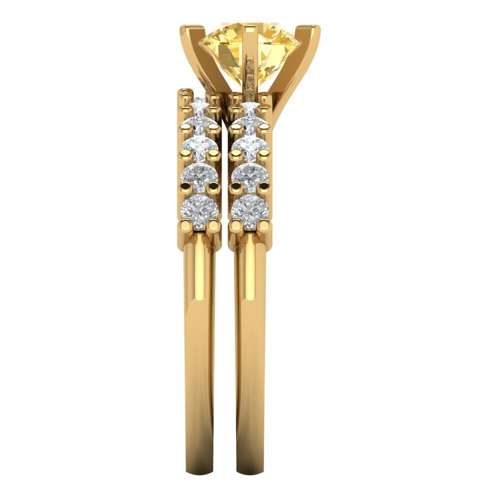1.66 cttw Round Cut Natural Citrine Bridal Set - Solid Yellow Gold Engagement Ring & Wedding Band