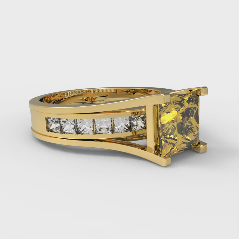 2.28 cttw Princess Cut Natural Citrine Bridal Set - Solid Yellow Gold Engagement Ring & Wedding Band