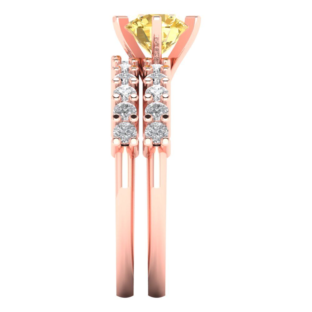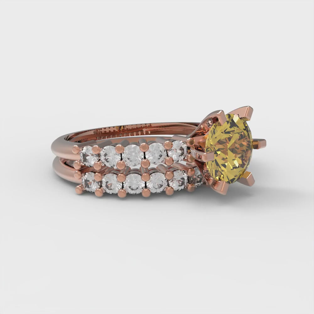 1.66 cttw Round Cut Natural Citrine Bridal Set - Solid Rose Gold Engagement Ring & Wedding Band