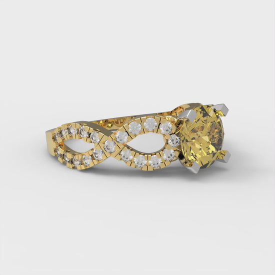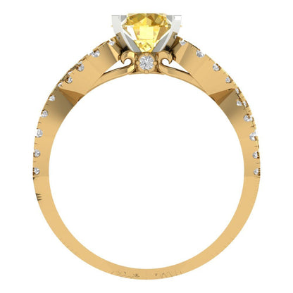 1.42 cttw Natural Citrine Solitaire with Zirconia Simulated Diamond Accents Engagement Ring - Solid Gold (Round Cut,6.5mm)