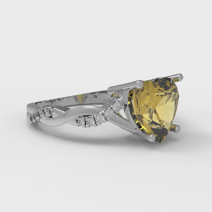 2.1 cttw Natural Citrine Solitaire with Zirconia Simulated Diamond Accents Engagement Ring - Solid Gold (Heart Cut,8mm)