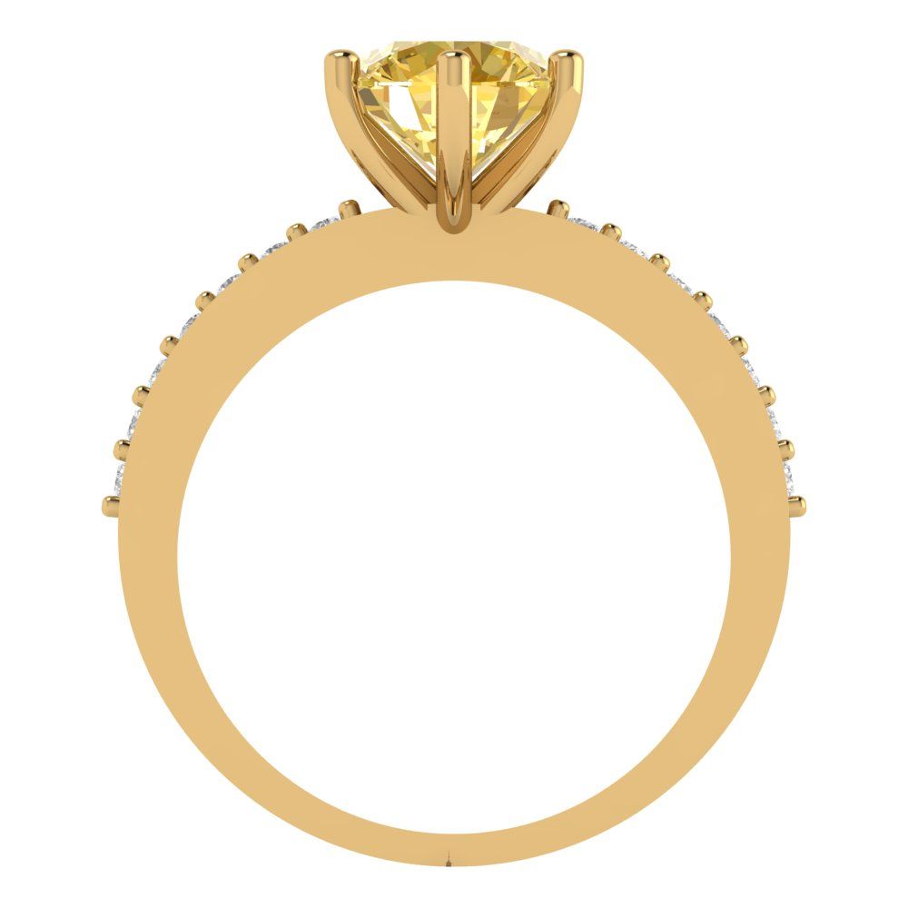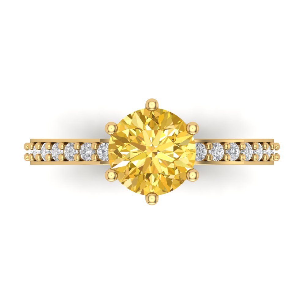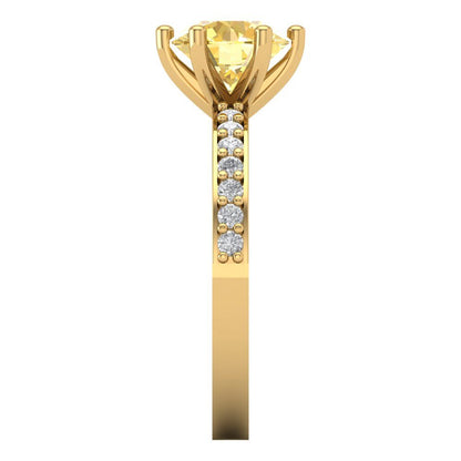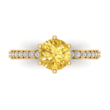1.71 cttw Natural Citrine Solitaire with Zirconia Simulated Diamond Accents Engagement Ring - Solid Gold (Round Cut,7.5mm)