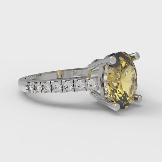 2.21 cttw Natural Citrine Solitaire with Zirconia Simulated Diamond Accents Engagement Ring - Solid Gold (Oval Cut,9X7mm)