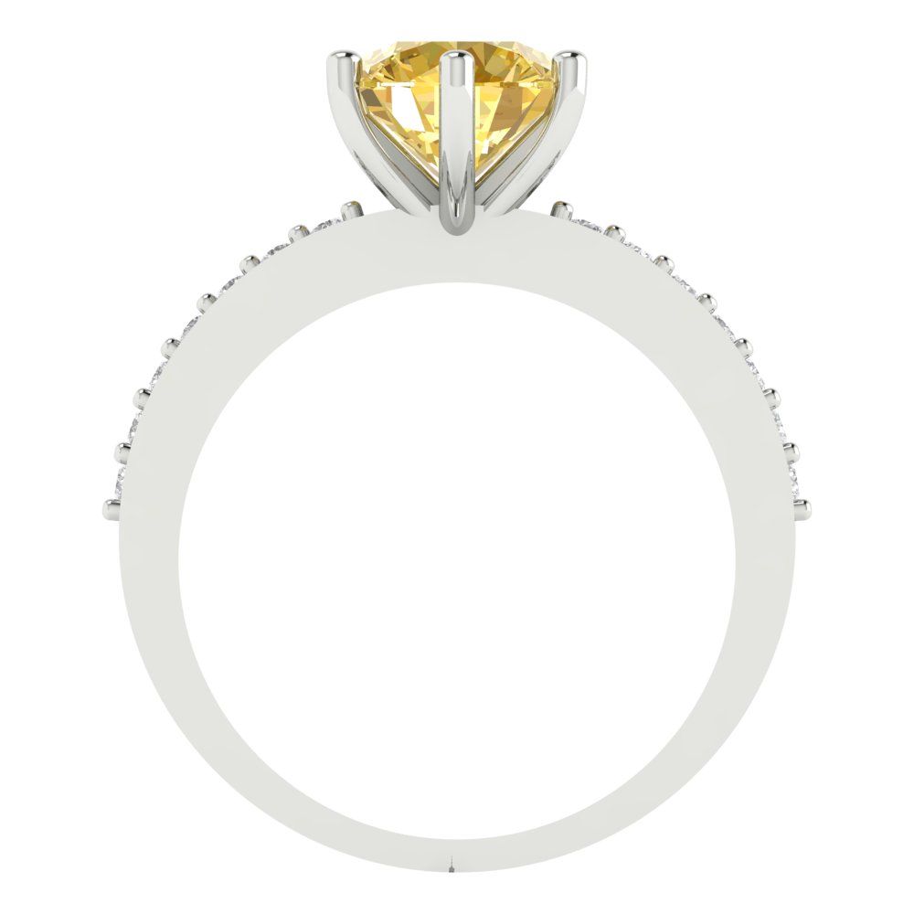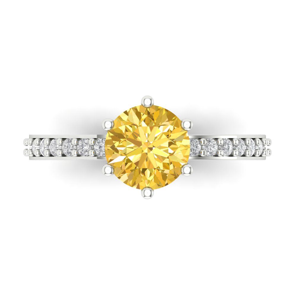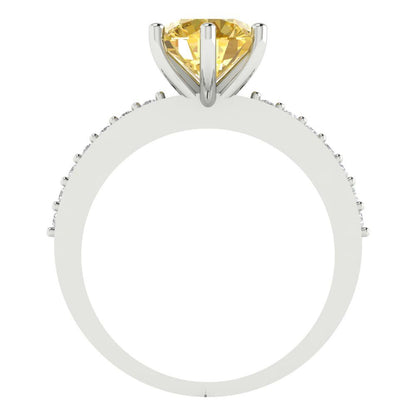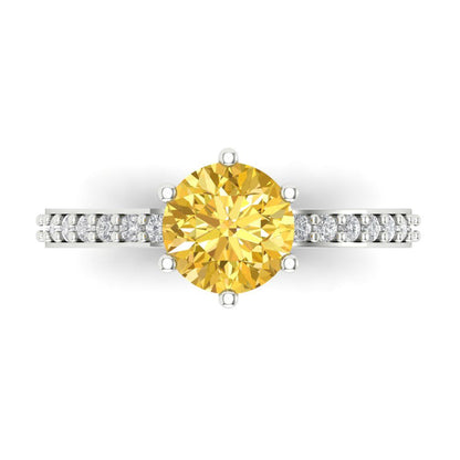 1.71 cttw Natural Citrine Solitaire with Zirconia Simulated Diamond Accents Engagement Ring - Solid Gold (Round Cut,7.5mm)