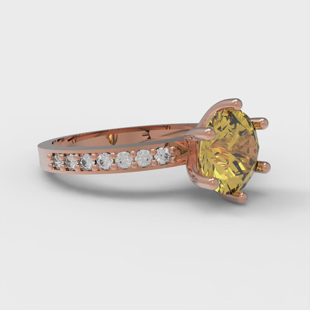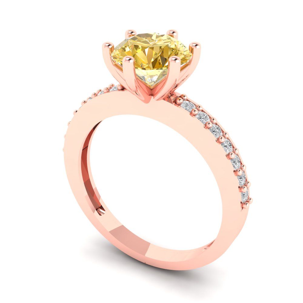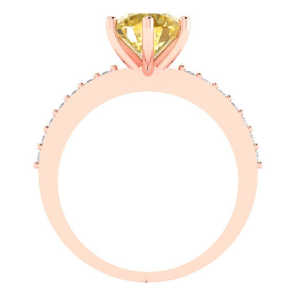 1.71 cttw Natural Citrine Solitaire with Zirconia Simulated Diamond Accents Engagement Ring - Solid Gold (Round Cut,7.5mm)