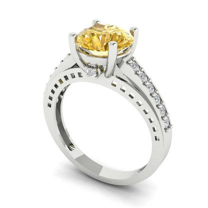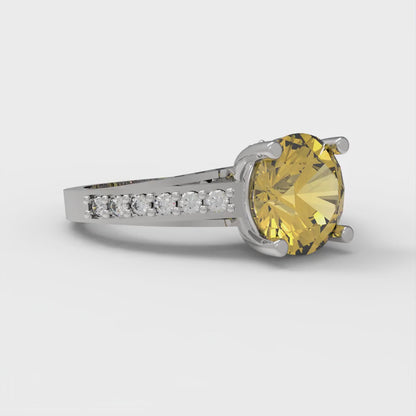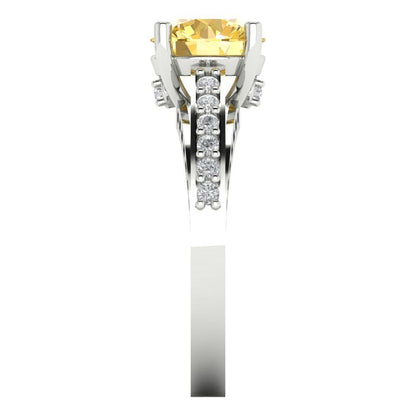 2.21 cttw Natural Citrine Solitaire with Zirconia Simulated Diamond Accents Engagement Ring - Solid Gold (Round Cut,8.0mm)
