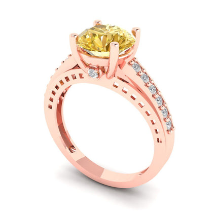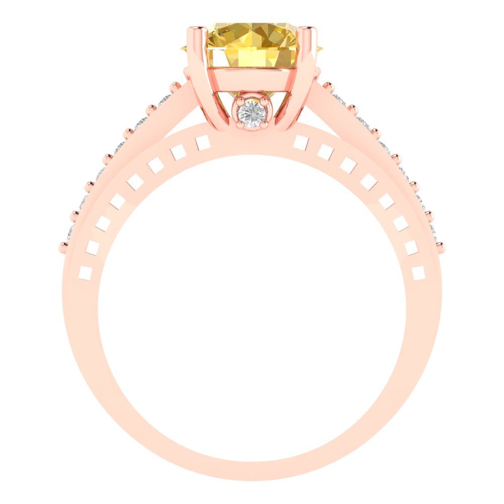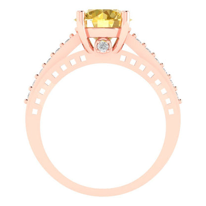 2.21 cttw Natural Citrine Solitaire with Zirconia Simulated Diamond Accents Engagement Ring - Solid Gold (Round Cut,8.0mm)
