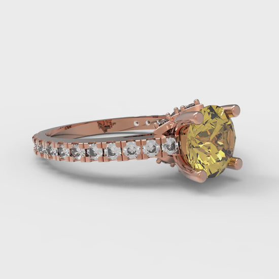 1.465 cttw Natural Citrine Solitaire with Zirconia Simulated Diamond Accents Engagement Ring - Solid Gold (Round Cut,6.5mm)