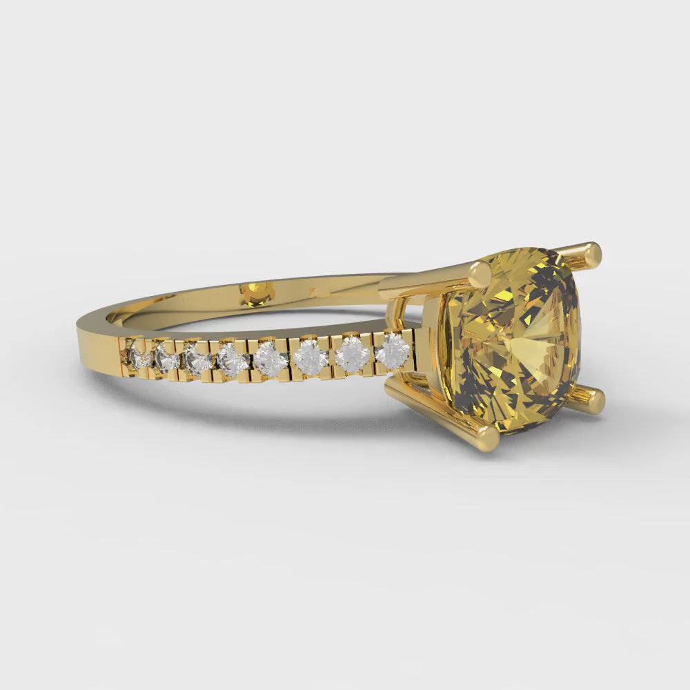 2.7 cttw Natural Citrine Solitaire with Zirconia Simulated Diamond Accents Engagement Ring - Solid Gold (Cushion Cut,6.5mm)