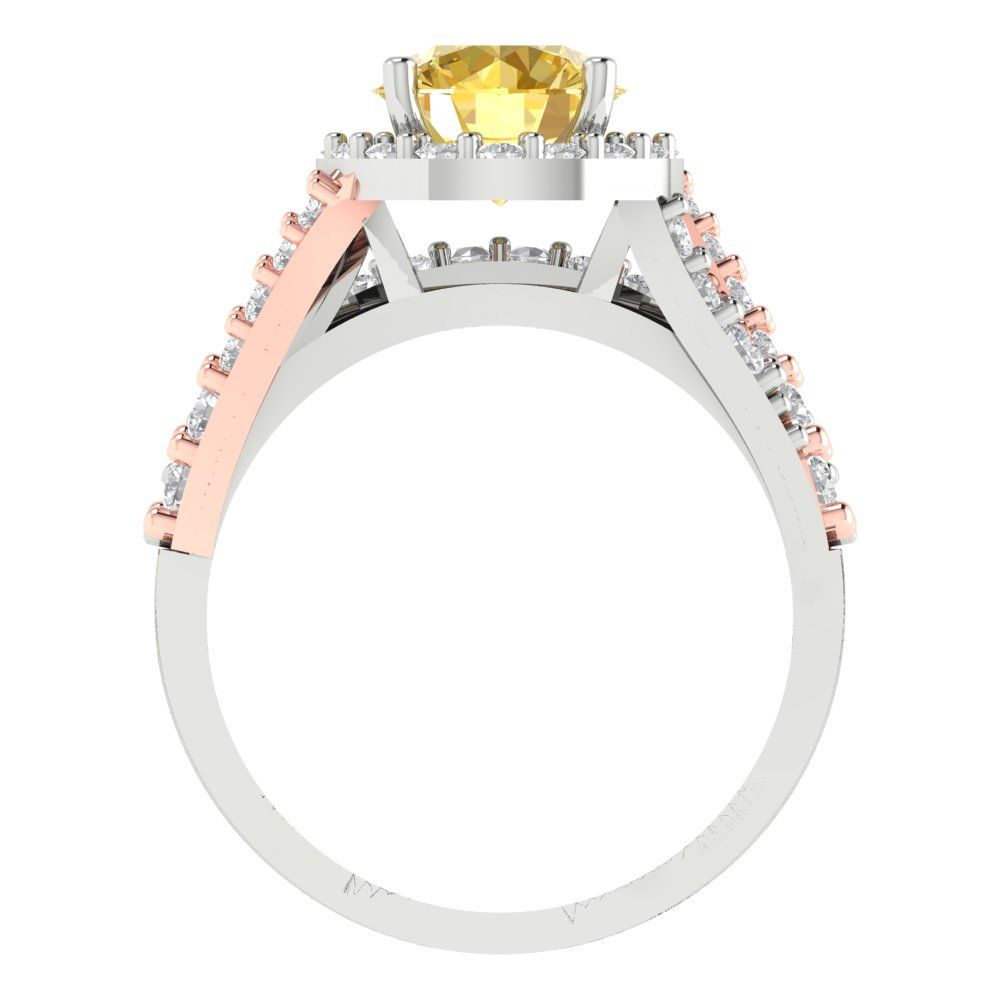 2.32 cttw Round Cut Natural Citrine Bridal Set - Solid White/Rose Gold Engagement Ring & Wedding Band