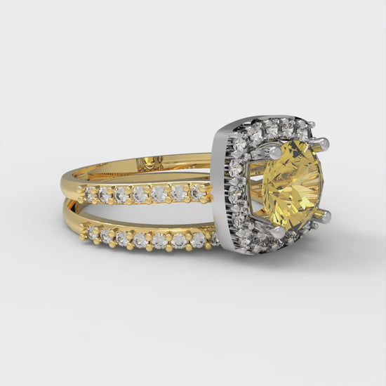1.495 cttw Round Cut Natural Citrine Bridal Set - Solid Yellow/White Gold Engagement Ring & Wedding Band