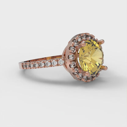1.8 cttw Natural Citrine Solitaire with Zirconia Simulated Diamond Accents Engagement Ring - Solid Gold (Round Cut,7.5mm)
