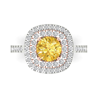 1.615 cttw Natural Citrine Solitaire with Zirconia Simulated Diamond Accents Engagement Ring - Solid Gold (Round Cut,6.5mm)