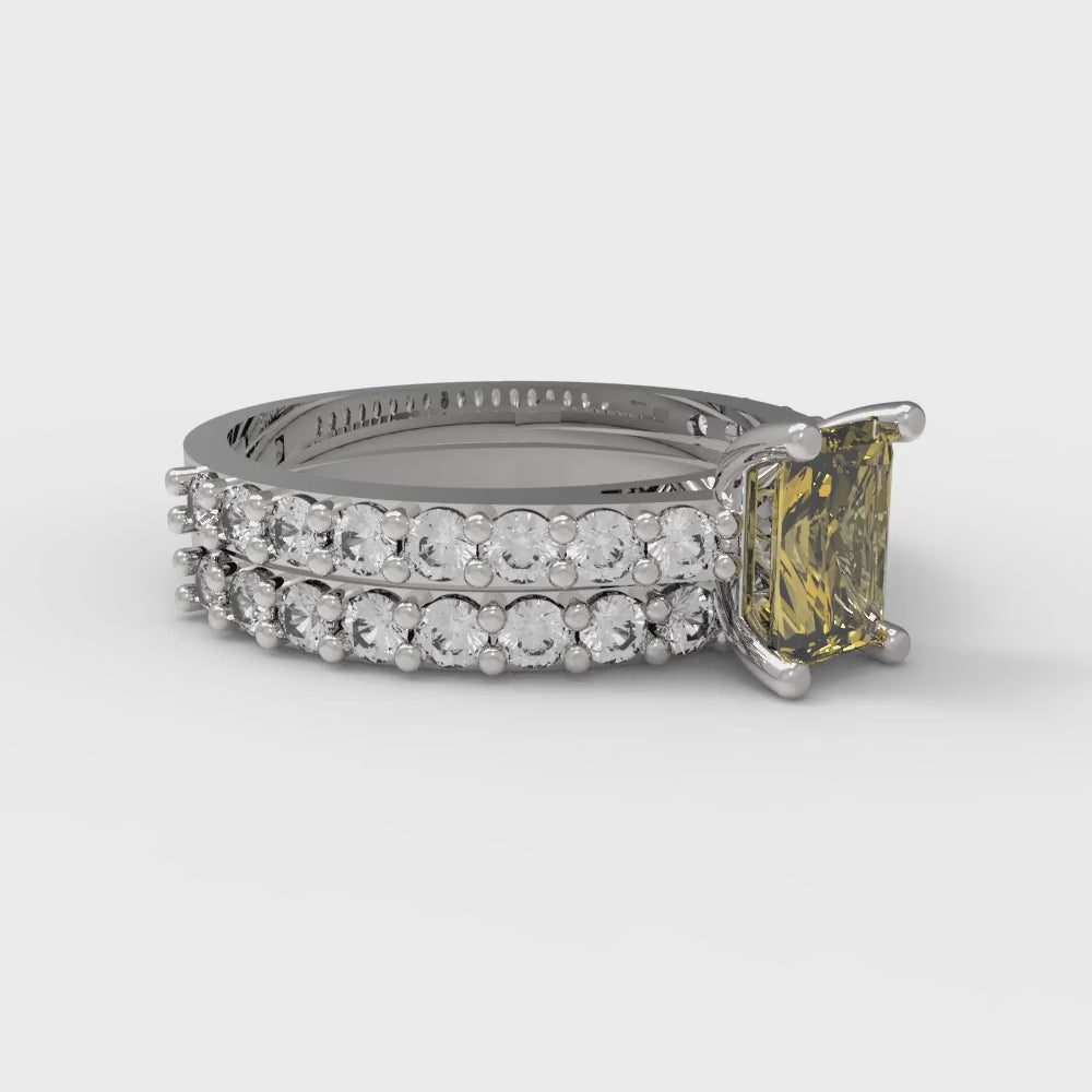 1.325 cttw Emerald Cut Natural Citrine Bridal Set - Solid White Gold Engagement Ring & Wedding Band